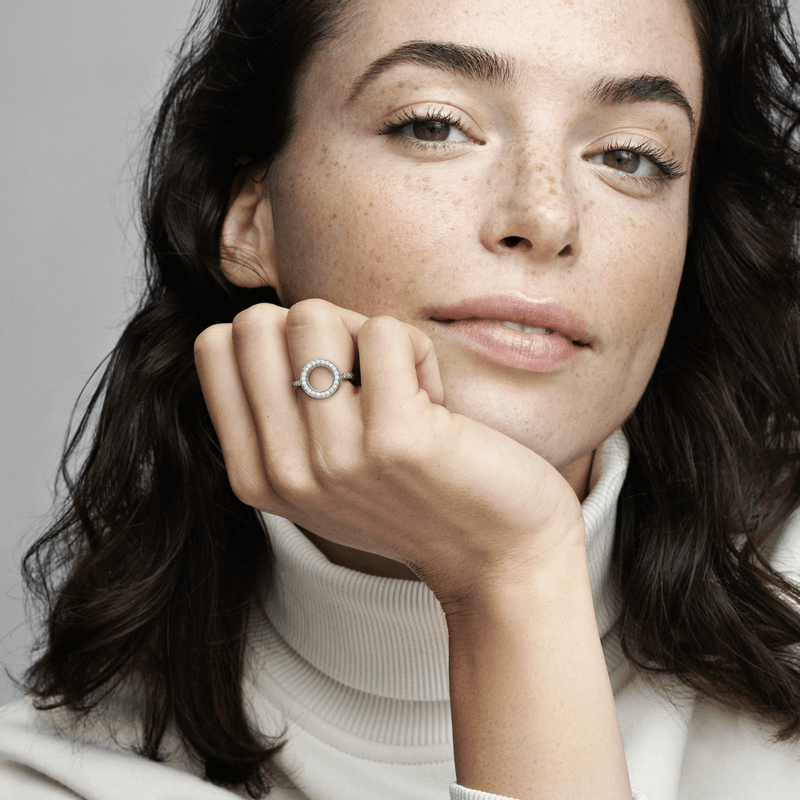 Vá do estilo vintage ao design abstrato com um anel. Este indispensável acabado à mão em prata 925 com pedras transparentes, detalhes clássicos e corações recortados irão completar qualquer look.